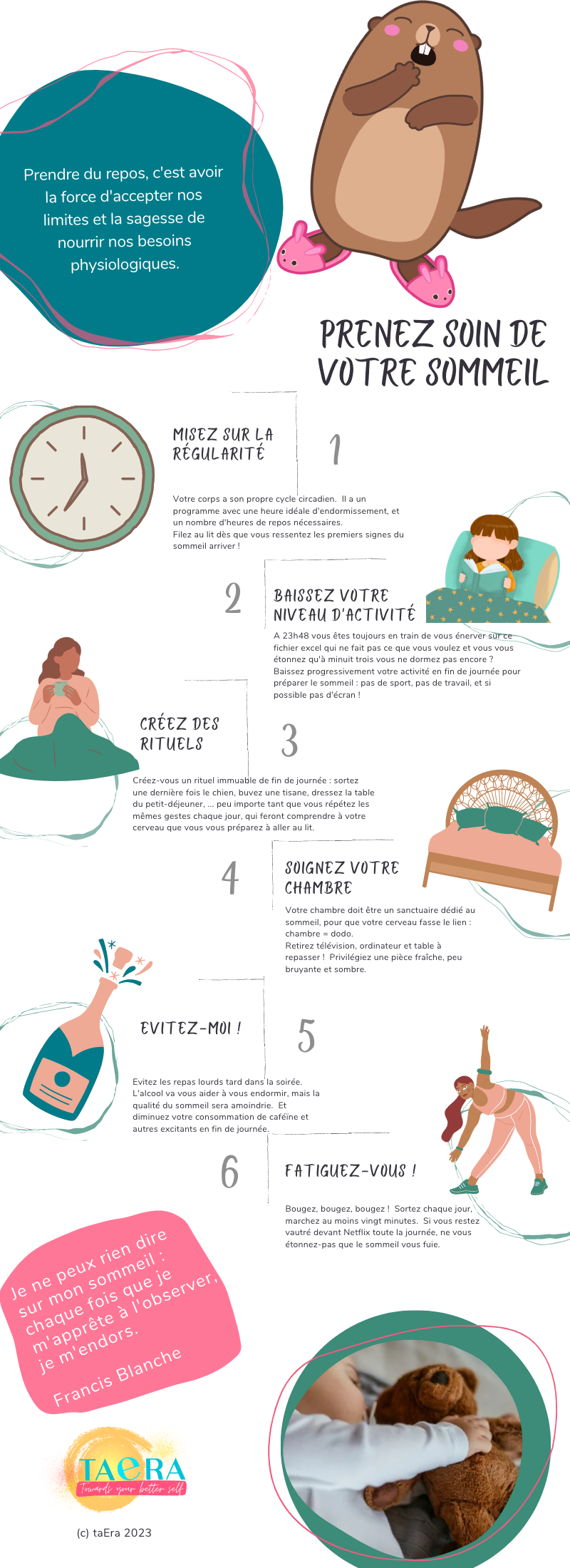 Voici une infographie qui regroupe des conseils simples (mais pas forcément faciles à appliquer dans nos sociétés hyper connectées).